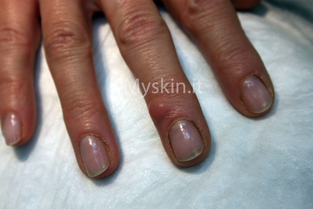 - Altri si verificano quando depositi insoliti di mucine (mucopolisaccaridi) si accumulano nella pelle delle dita delle mani o dei piedi.